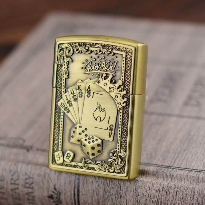 Lucky Poker Grinding Wheel Refillable Butane Lighter