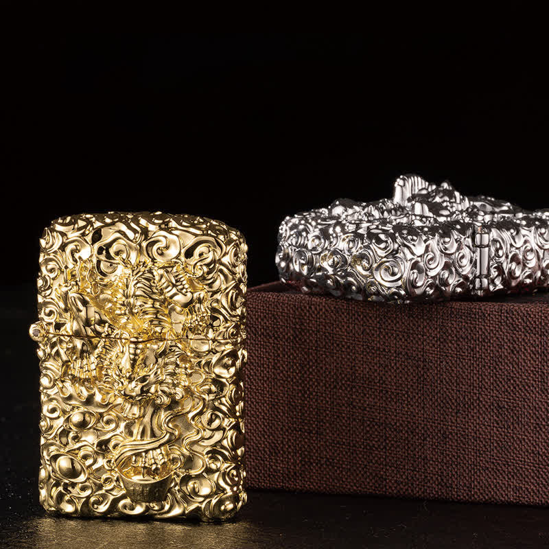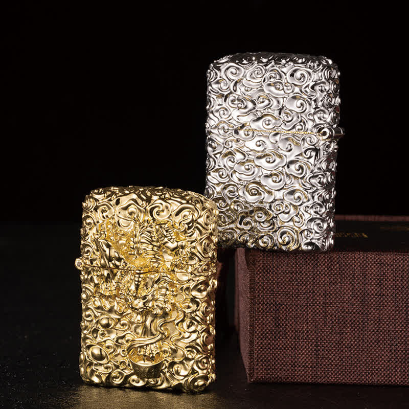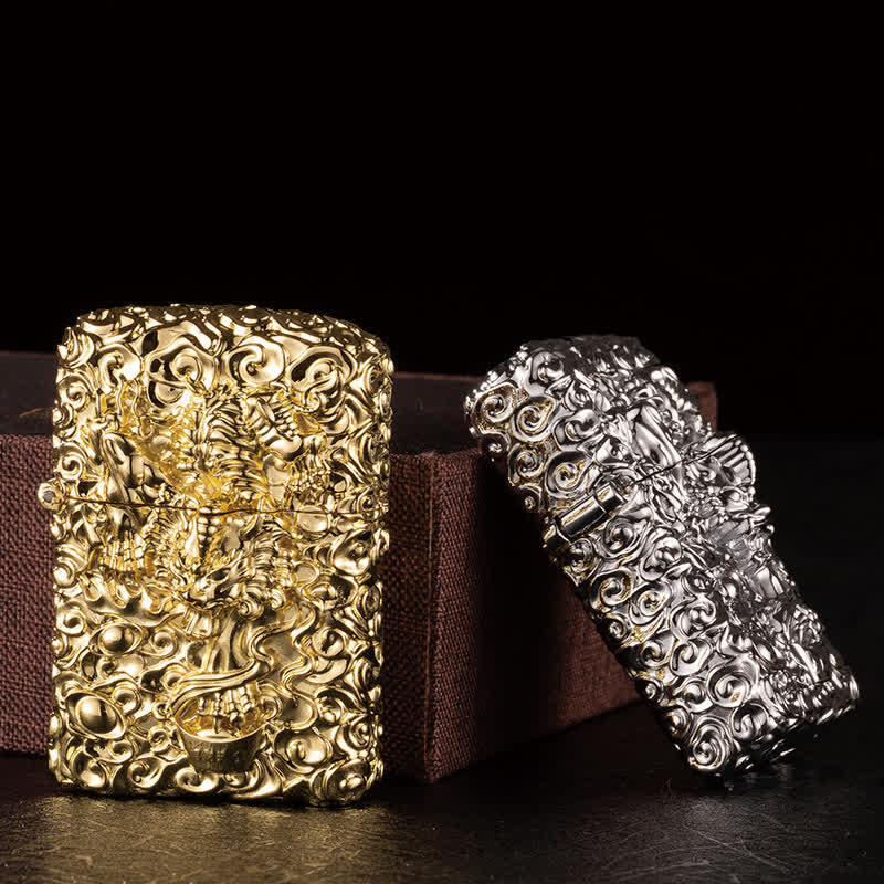 - This kerosene lighter is made of high-quality metal material, with engraved relif pattern.