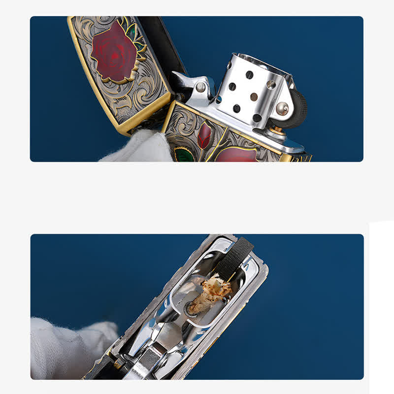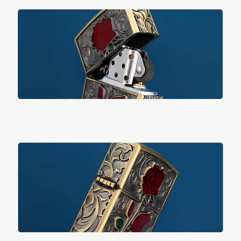 • This kerosene lighter is made of high-quality metal material, has a elegant rose relief pattern.