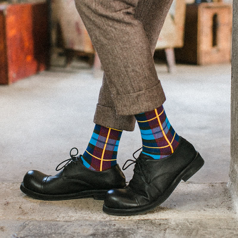 Novelty Plaid Patterned Cozy Cotton Crew Socks