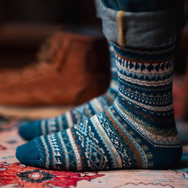 Men's Bold Colorful Knit Pattern Cotton Socks