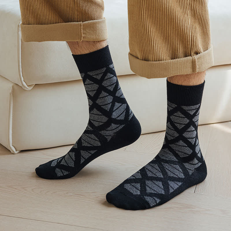 Men's Ethnic Style Small Diamond Pattern Crew Socks