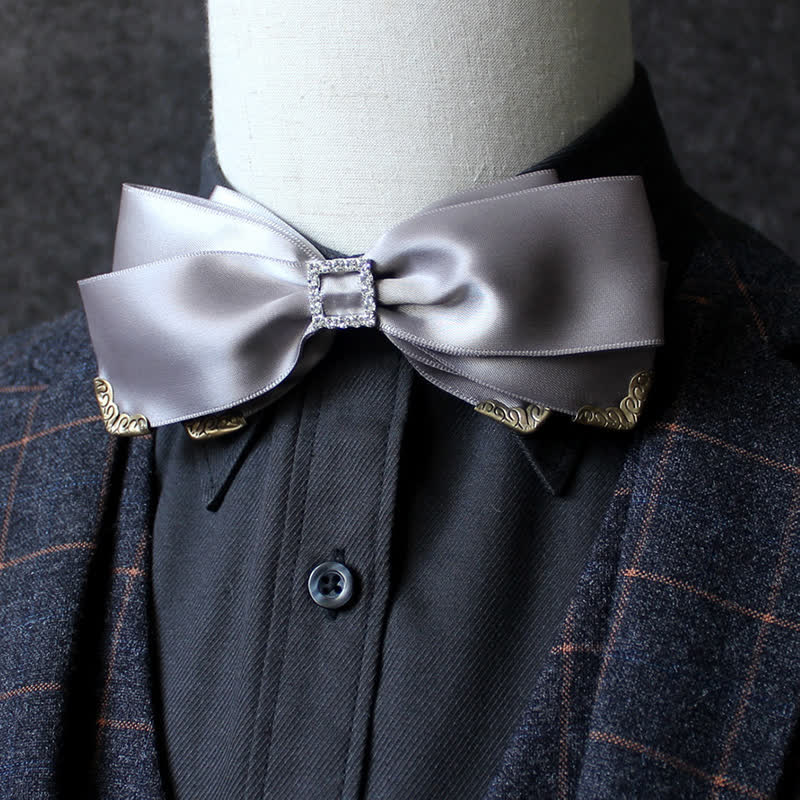 - Timeless bow tie with golden edge and rhinestone is perfect for making a great first impression.