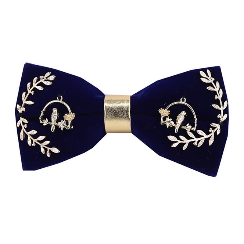 Men's Navy Golden Metal Phoenix Branch Bow Tie