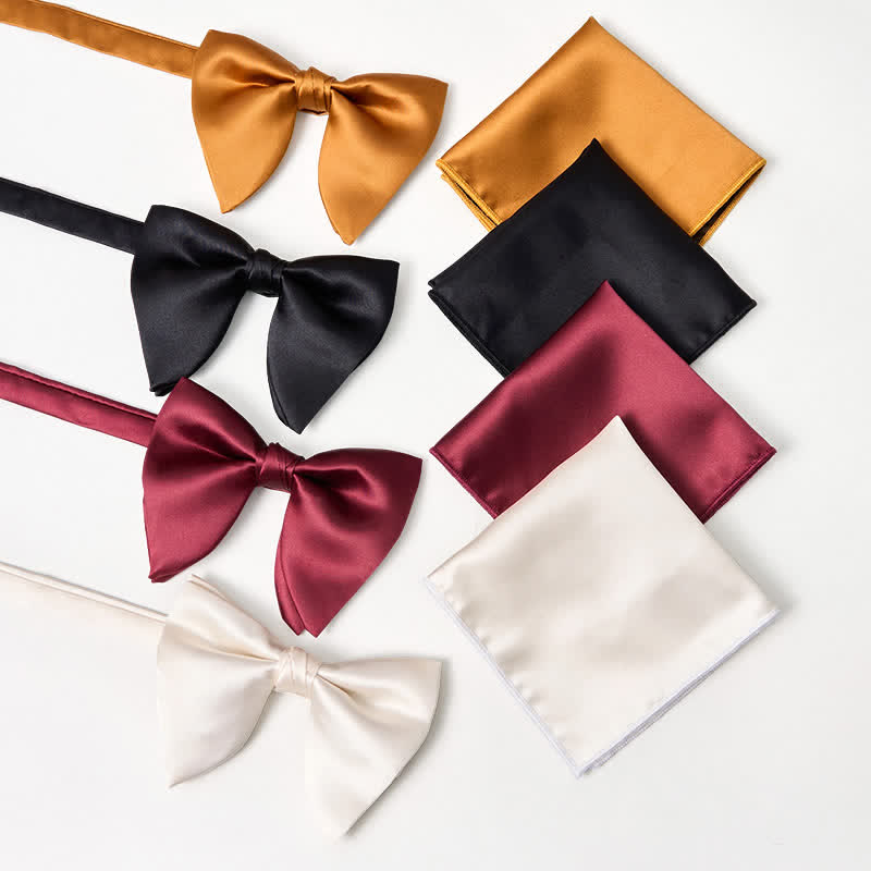Men's British Style Solid Color Oversized Pointed Bow Tie Pocket Square