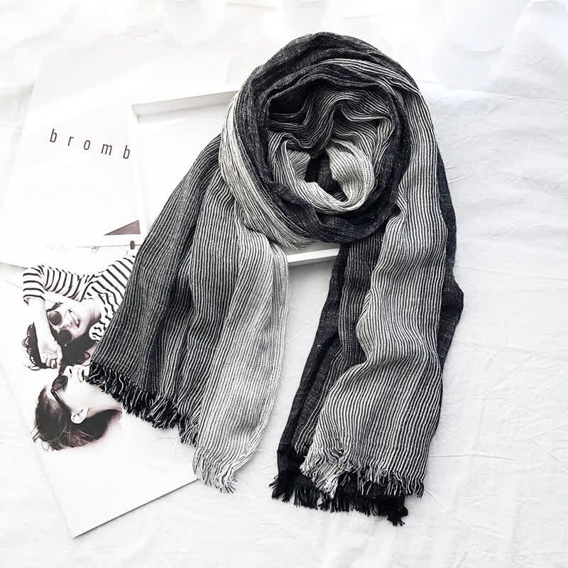 Unisex Striped Cotton Linen Spring Autumn Draped Scarf