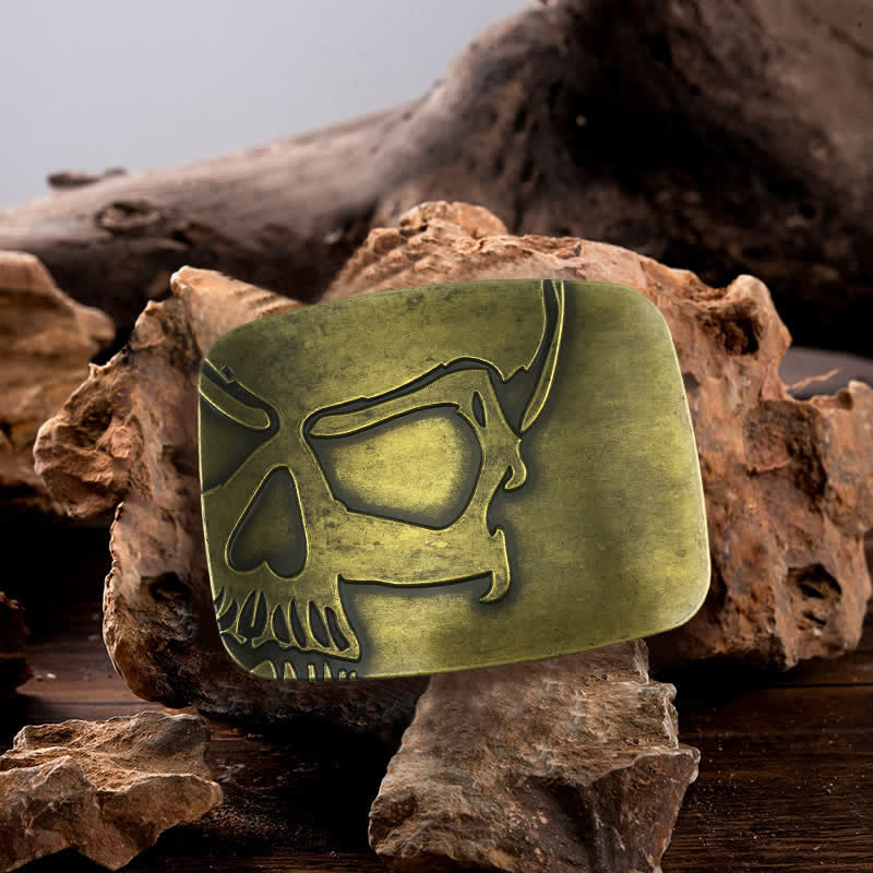 Men's DIY Bronze Embossed Skull Buckle Leather Belt