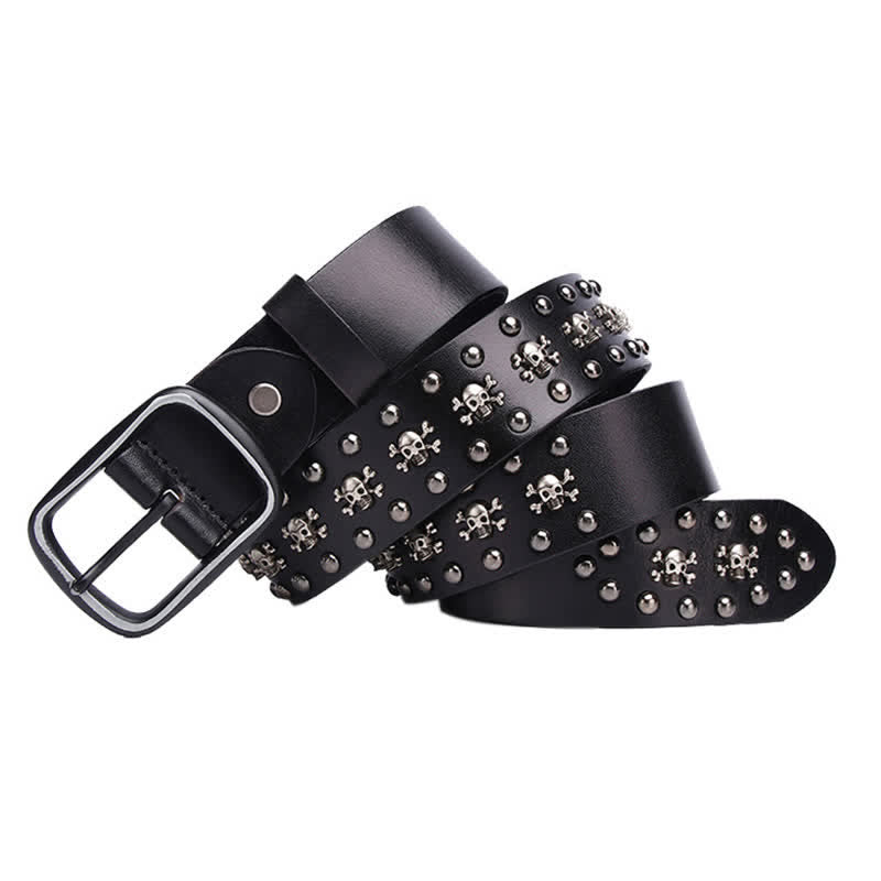 Cartoon Skull Buckle Bullet-Shaped Rivets Leather Belt