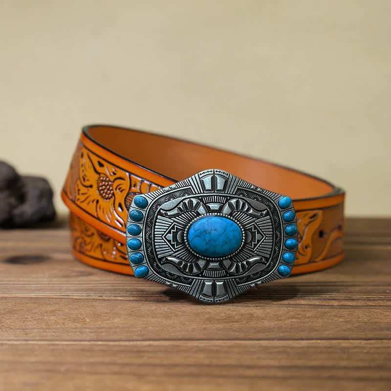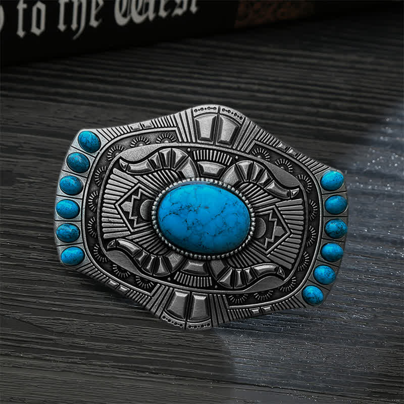 This buckle offers Bohemia style that includes carving and artificial turquoise stone! The silver color will give it texture and the turquoise on top is very rich. Can't imagine how unique you could be when you have this metal buckle on your belt.