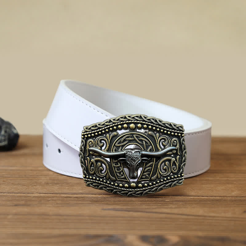 Detailed longhorn bull head with hollow western scrolls design, has fine engraving and polishing techniques, excellent texture, this Western style belt buckle is perfect for daily wear.