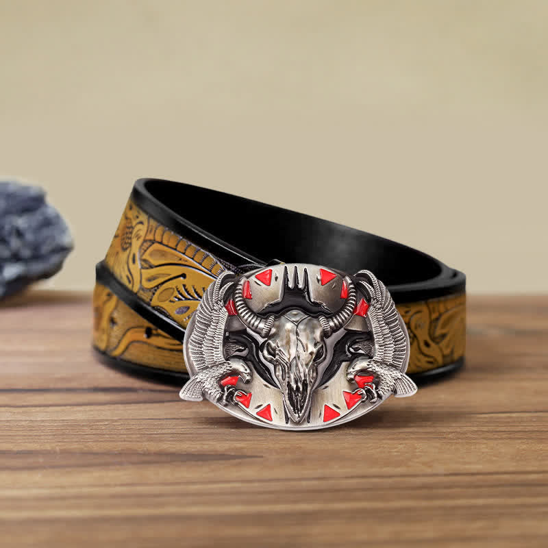 Men's DIY Vintage Bull & Dual Eagles Buckle Leather Belt