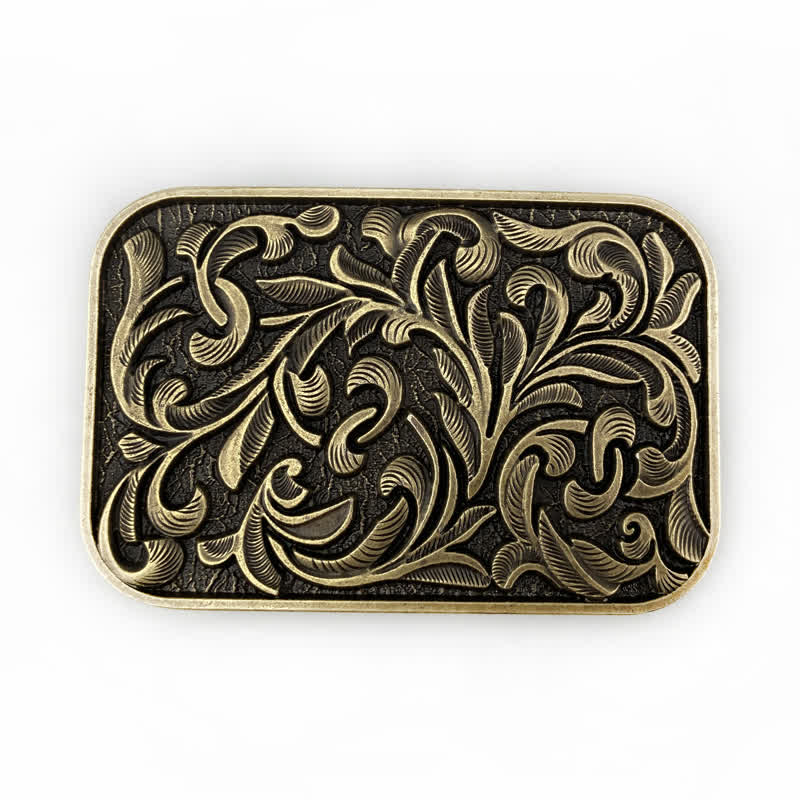 Men's DIY Art Leaves Scrollwork Buckle Leather Belt