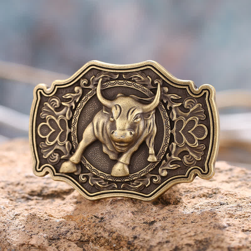 Men's DIY Blue Enamel Rodeo Bull Buckle Leather Belt