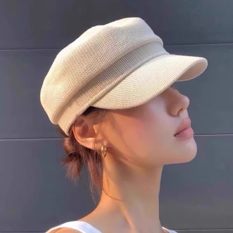 Women's Soild Color Straw Linen Octagonal Beret Hat