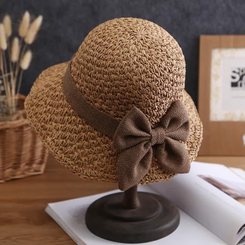 Bow Knot Beach Crochet Foldable Sun Straw Hat