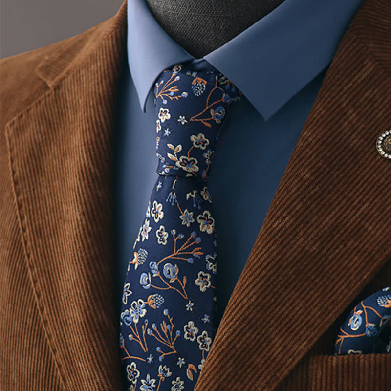 2Pcs Men's Garden Leaves Floral Necktie Set
