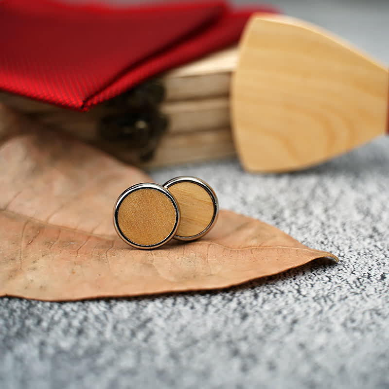 - Set Inclued: Wood bowtie, Handkerchief & Cufflinks set with wooden gift box.